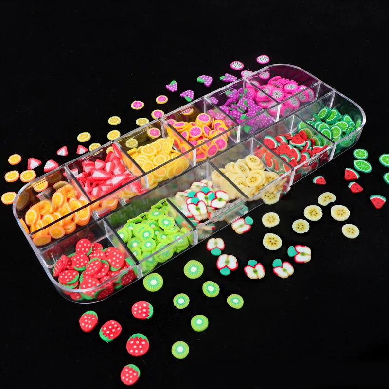 GAM-BELLE 12 сетоккоробка 3D Смешанная форма фруктов блестка для ногтей Полимерная глина украшения ногтей хлопья DIY Дизайн Аксессуары для маникюра