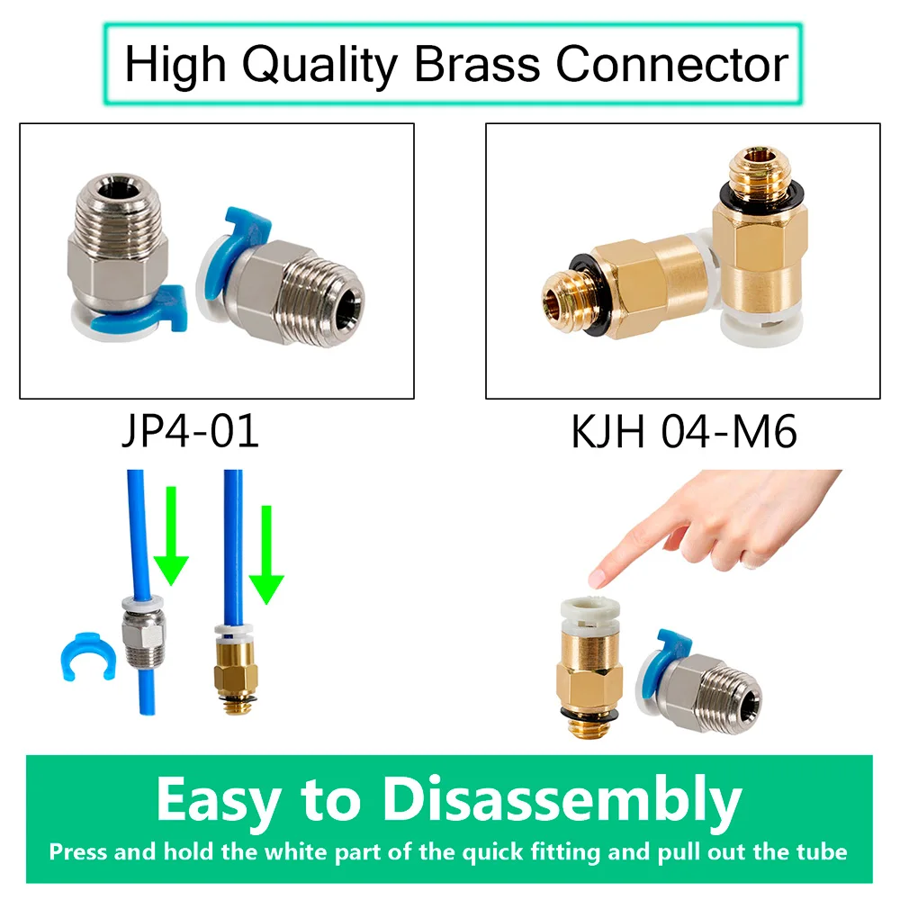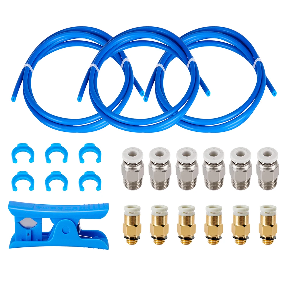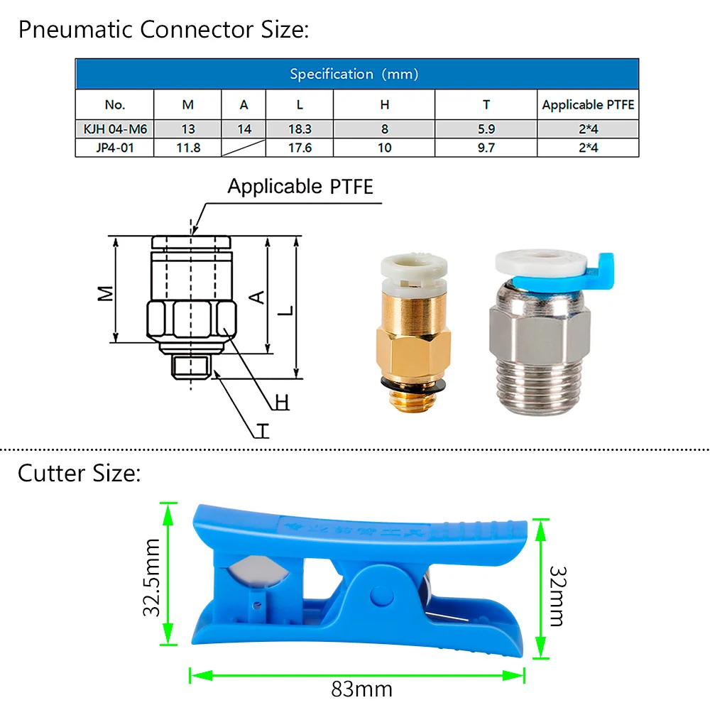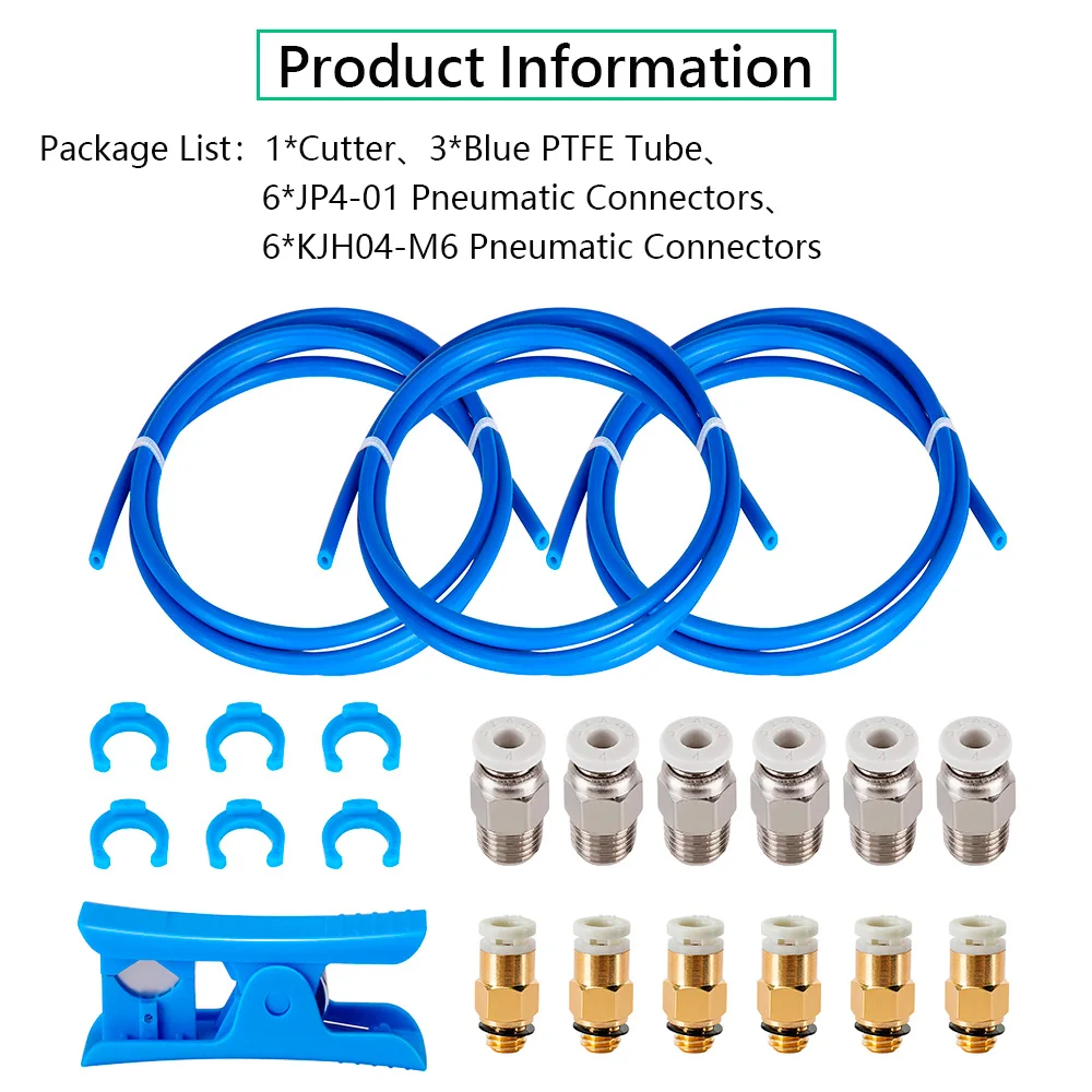 Внутри Диаметр: 2 мм внешний Диаметр: 4 мм для 1,75 мм нити Цвет: синий Название: фторопластовая трубка Материал: PTFE для пневматического соединения: KJH04-M6: нить M6 JP4-01: нить M6 Материал: нержавеющая Сталь/латунь посылка список: 3 шт. * 1,5 м фторопластовая трубка 6 шт. * KJH04-M6 прямой Пневматический разъем 6 шт. * JP4-01 прямой Пневматический разъем 1 ФУМ-труборез