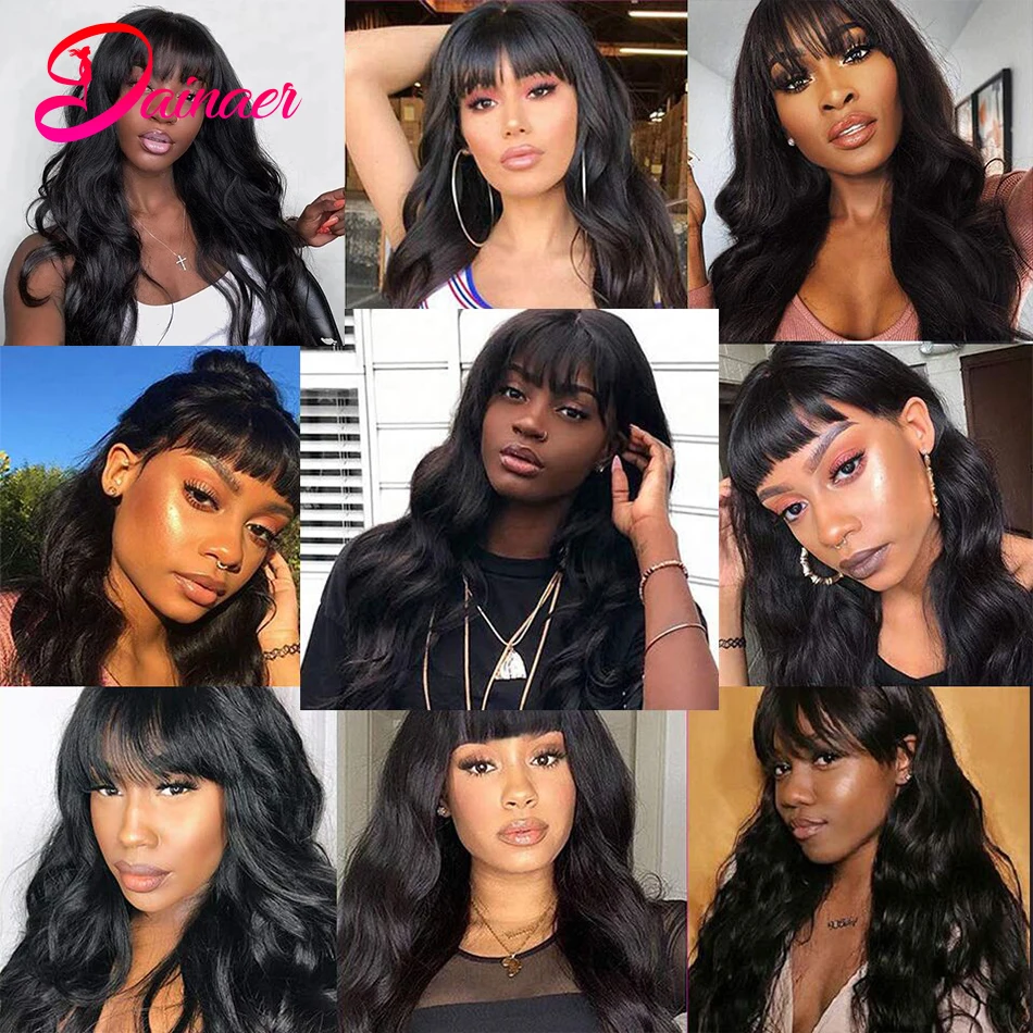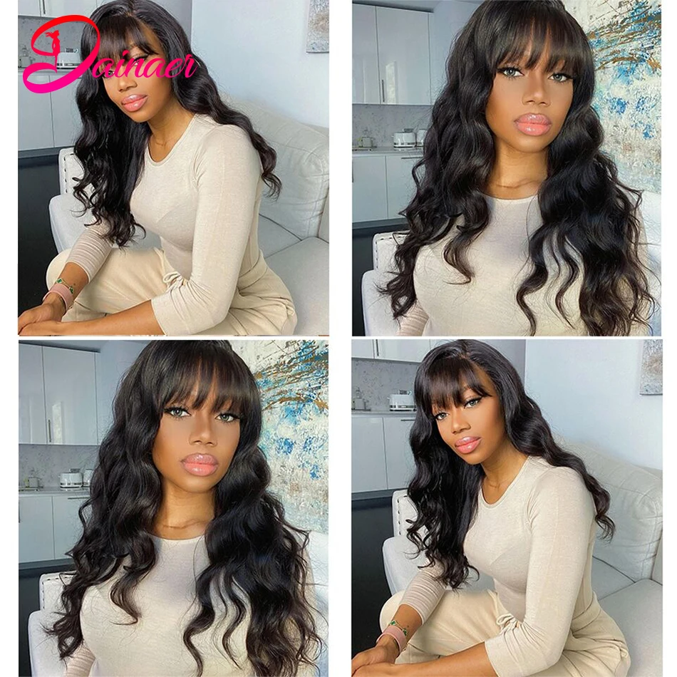 Парик из натуральных человеческих волос с челкой, парики без клея с полной машинкой для женщин, парики из человеческих волос с челкой, Искусственные парики