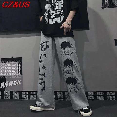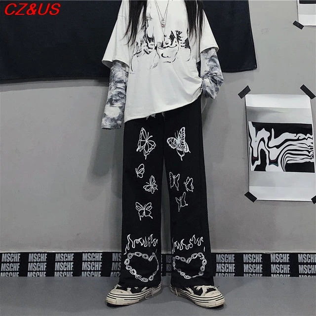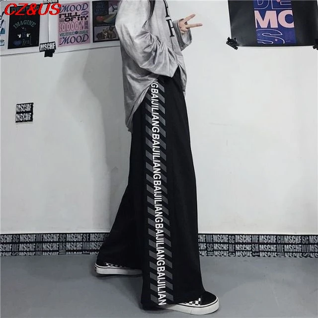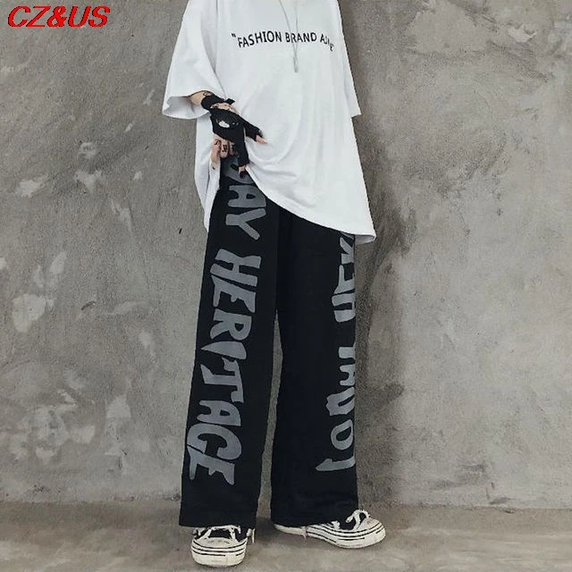 Ретро темные спортивные брюки в стиле Харадзюку в стиле хип-хоп для влюбленных свободные прямые широкие брюки универсальное строение