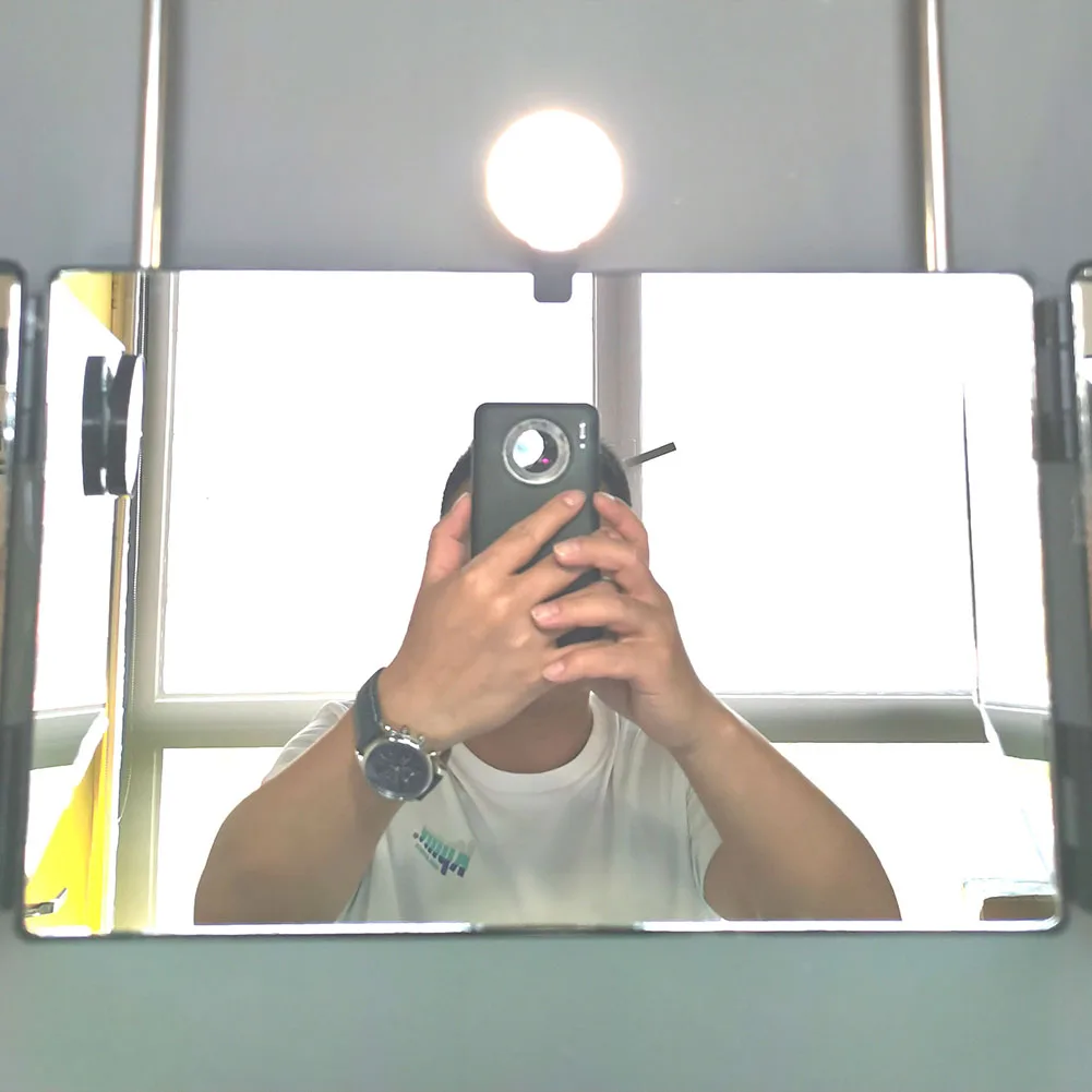 * 2. Светодиодный свет: специальный светильник льник с 3-уровневой яркостью можно прикрепить к любому месту зеркала, что делает его удобным для макияжа.