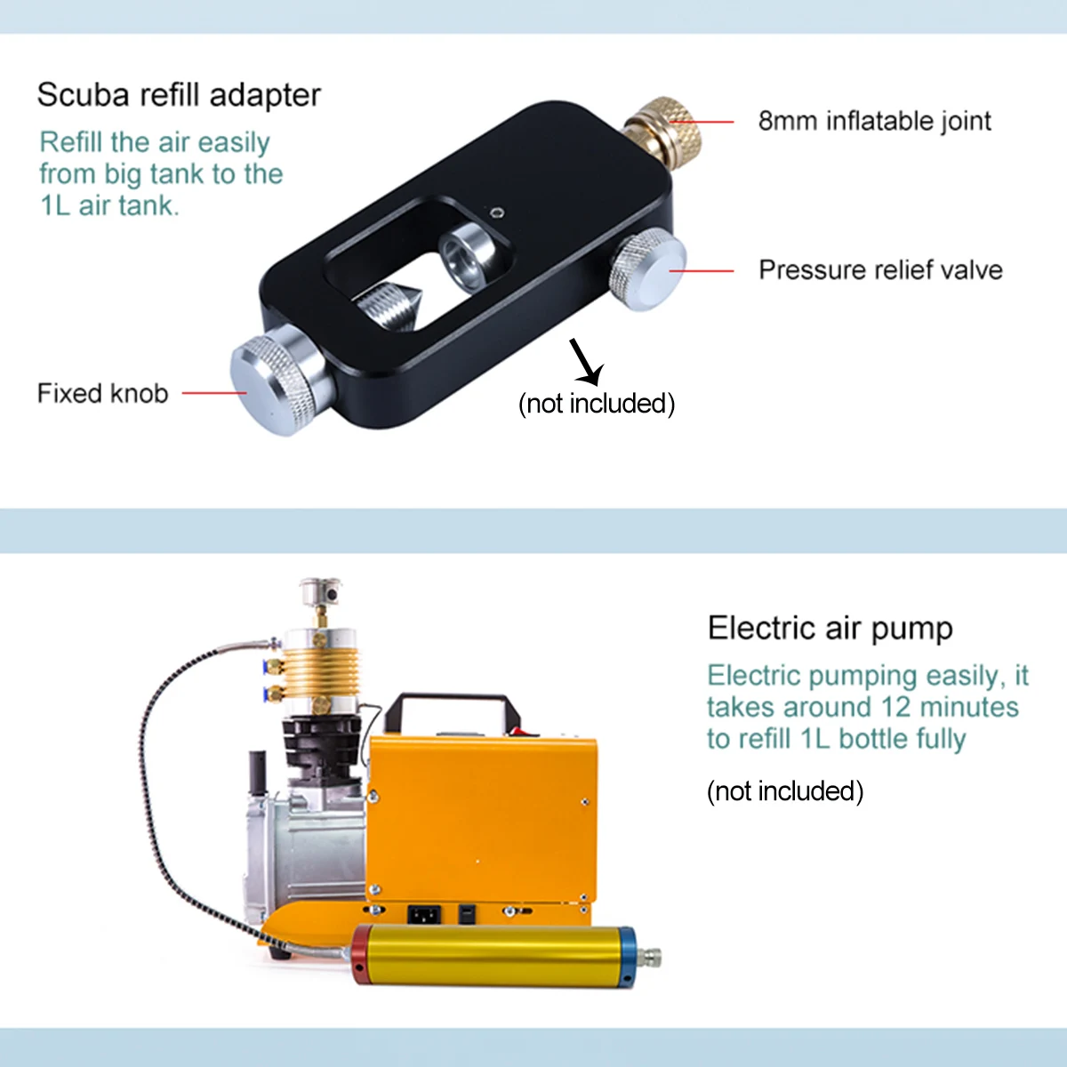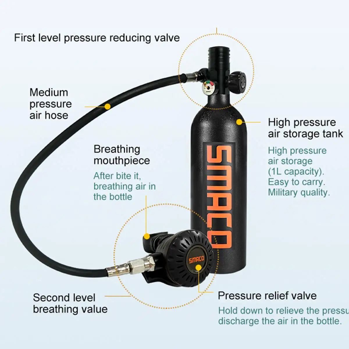 SMACO S400 Plus, 1 л, резервуар для подводного плавания, оборудование, мини-цилиндр для подводного плавания, кислородный резервуар, снижение давления для подводного плавания, набор клапанов