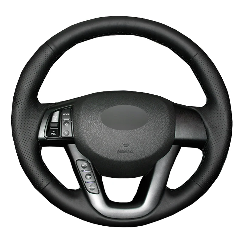 Черная кожаная чехол рулевого колеса автомобиля HuiER ручной работы...