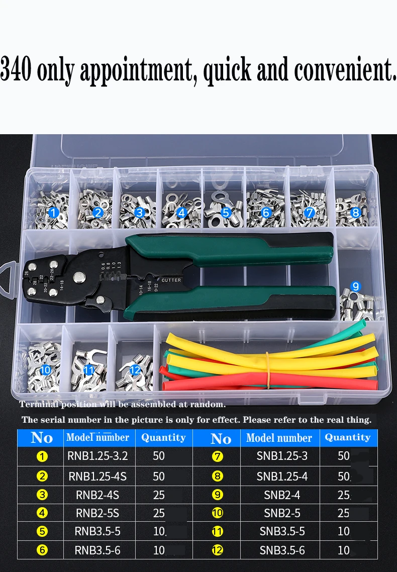 340 шт. холоднопрессованный неизолированный наконечник OTUT для самостоятельной сборки, Круглый Магнитный медный набор RNB с обжимными плоскогубцами