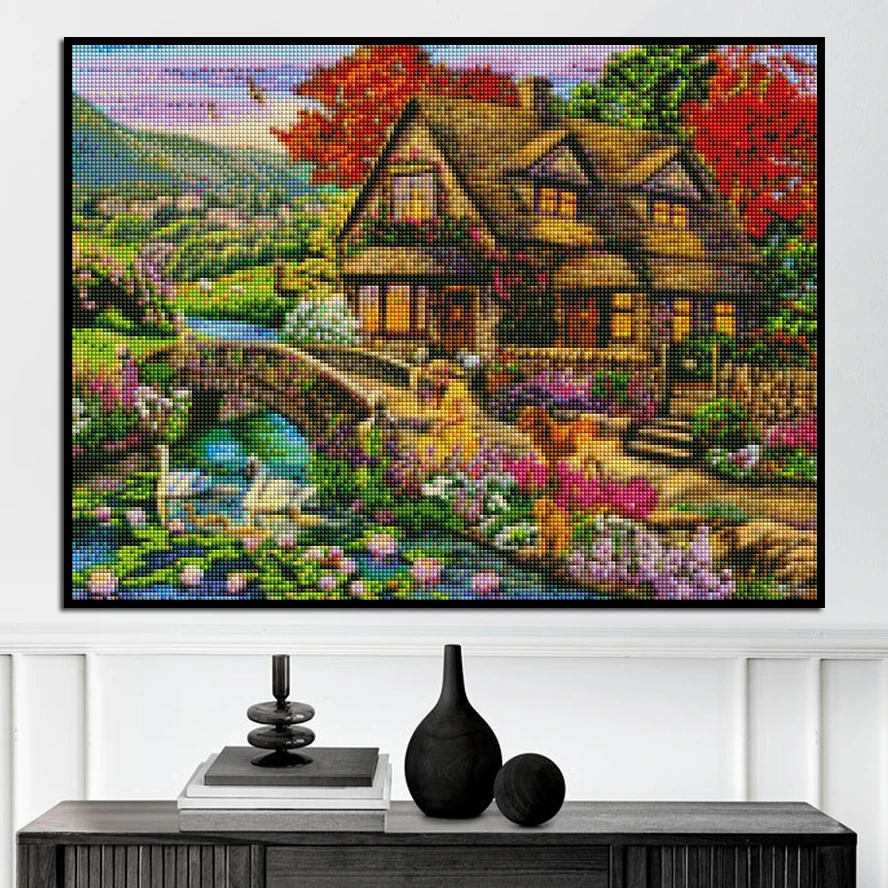 Набор для алмазной вышивки Дом, 5D, с изображением весеннего пейзажа