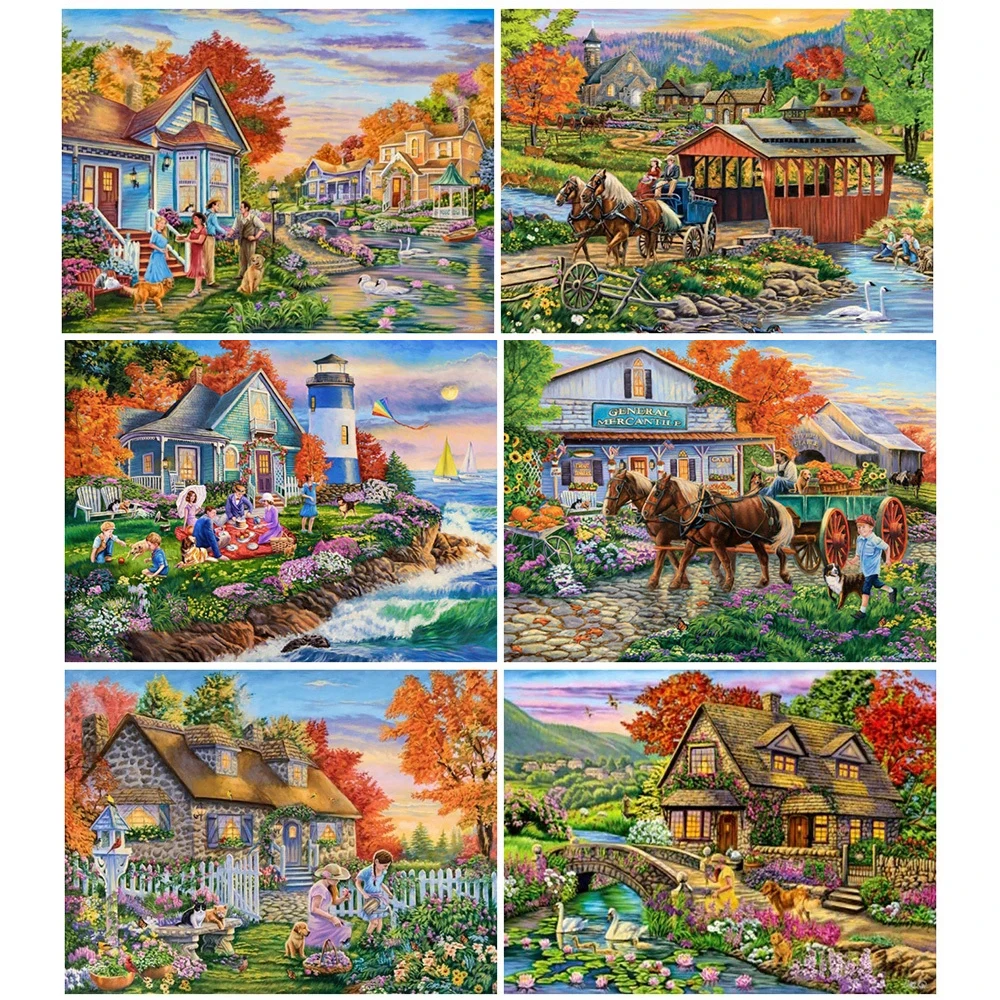 Красочная полноразмерная алмазная живопись AB, домашний ландшафт, а...