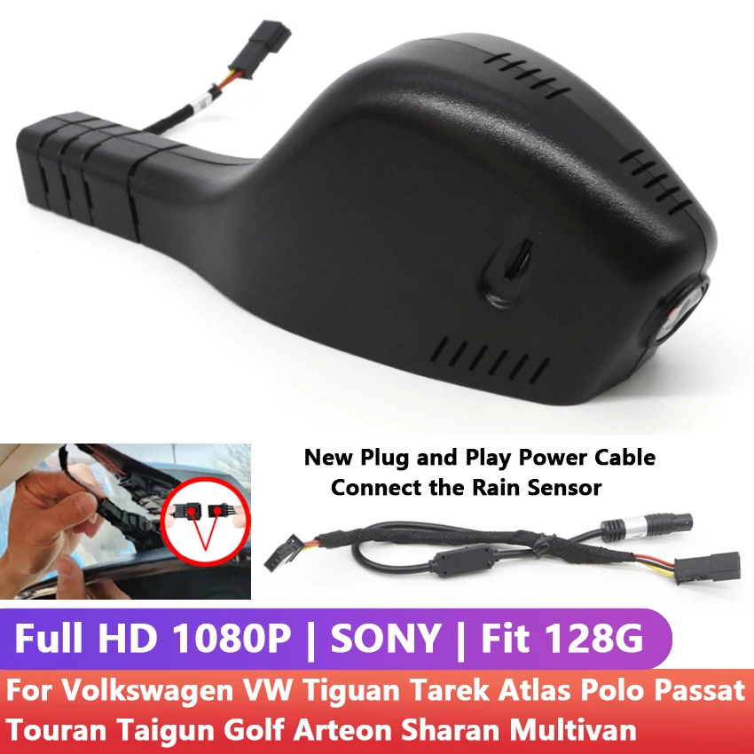 Автомобильный видеорегистратор с Wi-Fi, передняя и задняя камеры для Volkswagen, VW Tiguan, Tarek, Atlas, Polo, Passat, Touran, Taigun, Golf, Arteon, Sharan, Multivan