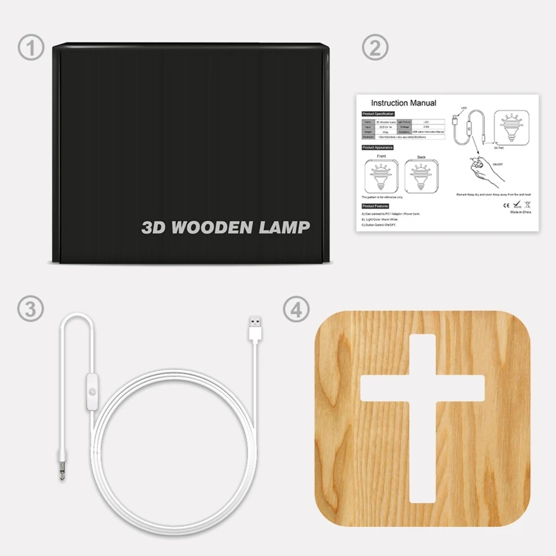 USB 3D светодиодный деревянный ночник jesu cross двойная Иллюзия 3D...