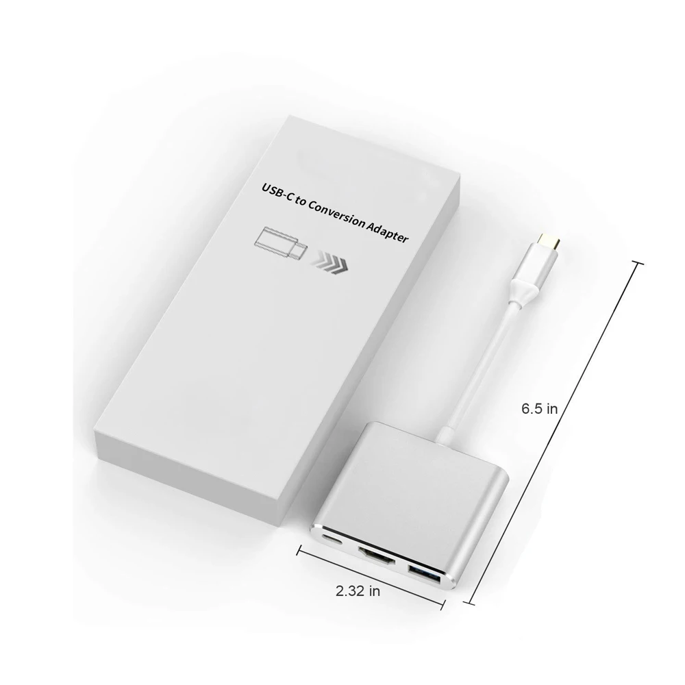 Переходник USB-CHDMI, USB 3,1, концентратор Type-C на HDMI 4K + USB 3,0 + USB-C, зарядный порт для MacBook Pro iPad ProS8 +S9 +проектора