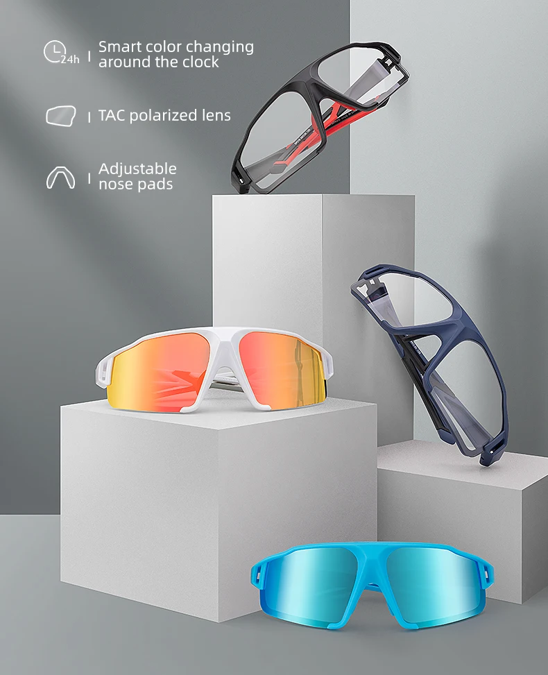1. Фотохромные линзы + TAC поляризованные линзы 2. Регулируемые носоупоры 3. Фотохромные: цвет линзы темнеет, так как интенсивность внешних ультрафиолетовых лучей увеличивается 4. Поляризованные: линза может эффективно фильтровать вредный светильник в окружающей среде и блокировать Отраженные блики 5. Технология цветного покрытия 6. Пневматическая вентиляционная конструкция