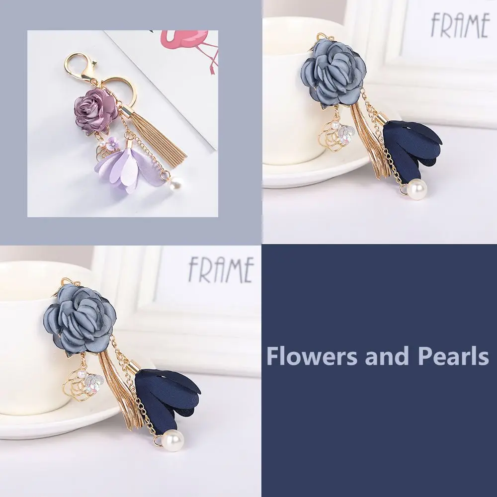 Брелок для ключей, женский, розовая роза, брелок с цветами, романтическая подвеска на сумку, цветы камелии, брелок для ключей с кисточкой, ювелирные изделия, подарки, брелок