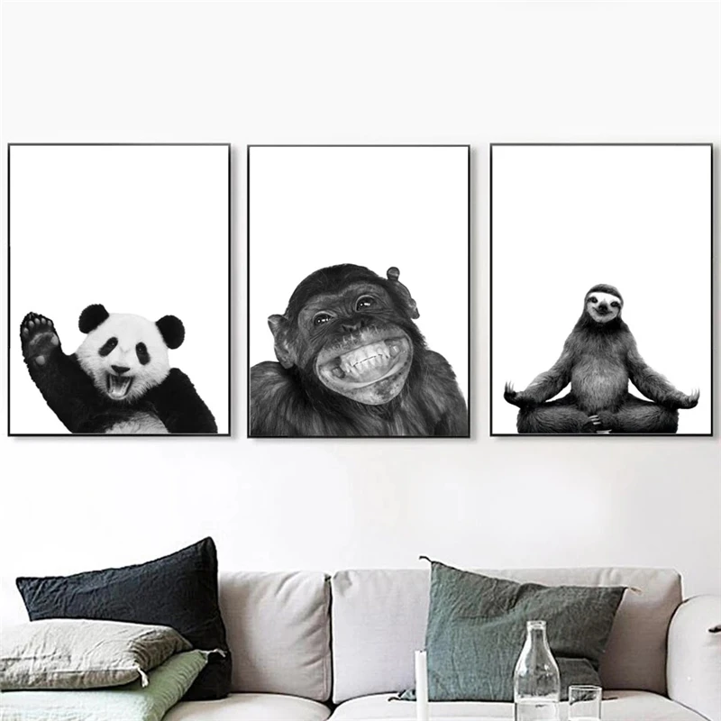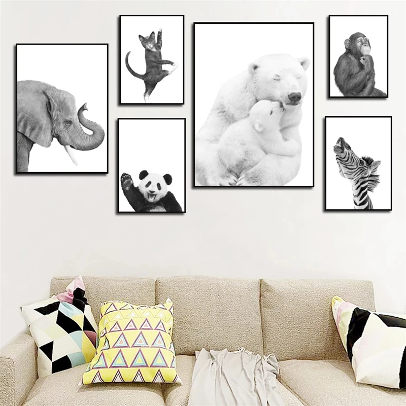 Черно-белые Львы животные Искусство Холст плакат дикий пейзаж живоп...