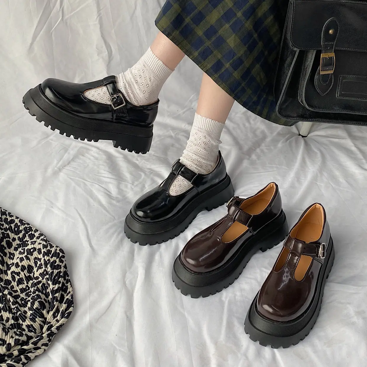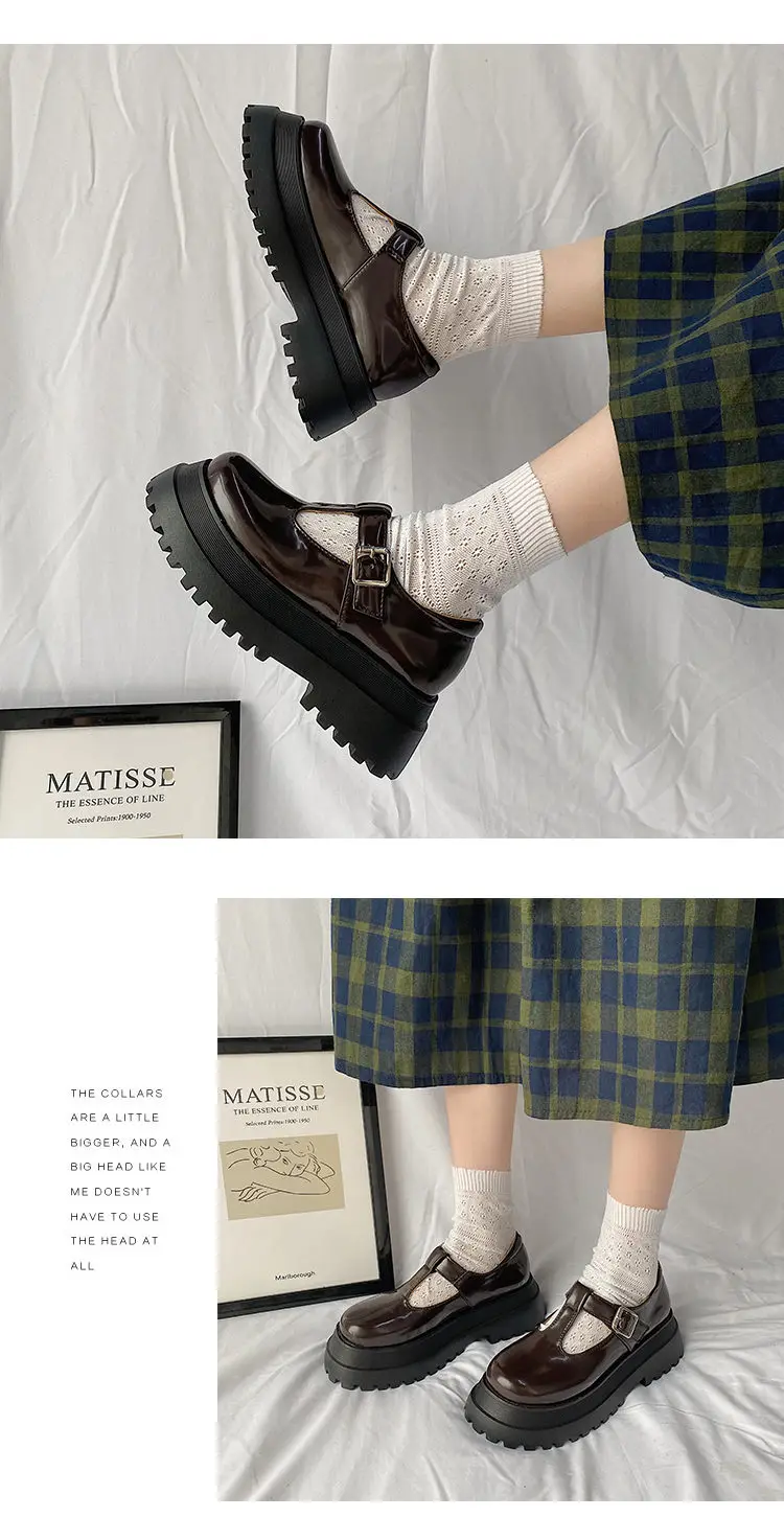 Школьная обувь в японском стиле, черные, коричневые туфли на платфо...