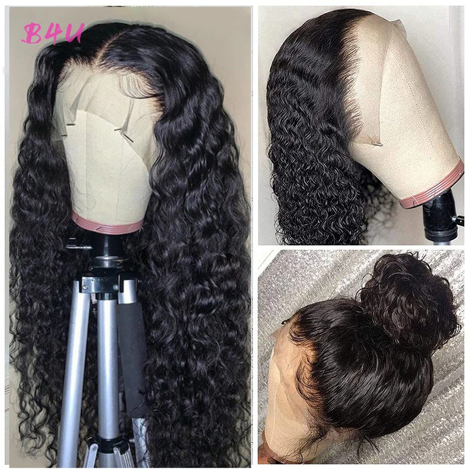 Парик Water Wave 13x4, прозрачный парик на сетке спереди, предварительно выщипанные волосы, на сетке спереди, бразильские кудрявые вьющиеся волосы, женские парики