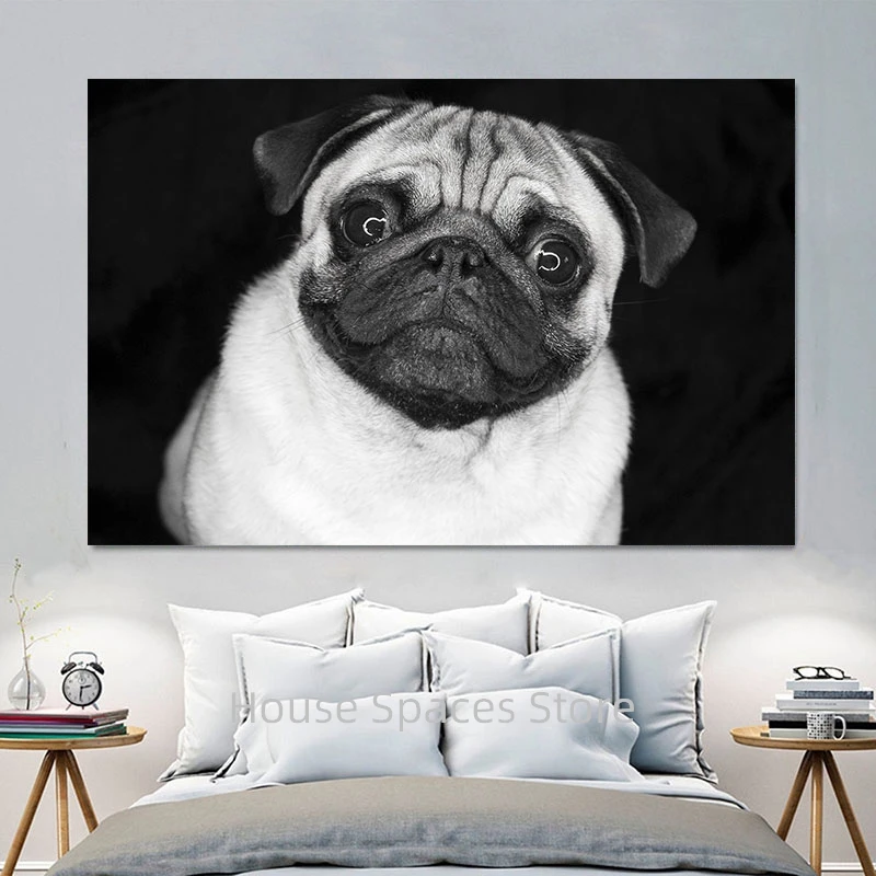 Плакат со слоном, собакой, Мопсом, кошкой, тигром, черно-белые настенные картины для гостиной, Современное украшение