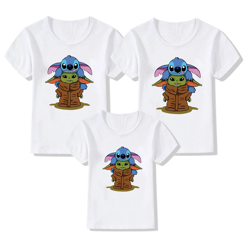 Модная женскаямужская футболка с принтом Лило и Ститч, летние белые...