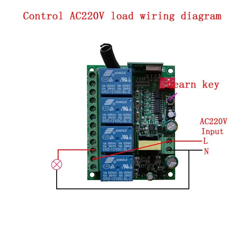 Пример: модель APAC - 4 sI. Обзор продукта:Компания разрабатывает и производит многофункциональный переключатель управления беспроводной связью для четырех релейных выходных сигналов, может управлять оборудованием, электрическим переключателем или проходом, конверсией и различными специальными программами управления. Он в основном используется в электрических дверях, окнах, подъемном оборудовании, воротах, лифтах, промышленном управлении, освещении и электрическом управлении.Беспроводной контроллер, приемник с высокой конфиденциальностью, стабильной производительностью, низким энергопотреблением и простым в использовании, без традиционной скачковой линии или набора кодового переключателя, просто поместите пульт дистанционного управления с приемным контроллером, чтобы обучение коду можно было реализовать. Есть четыре режима вывода: самоблокировка, Движение точки, блокировка, самоблокировка и трехстороннее движениеФункция разбора1) Режим пробежки: не набирайте переключатель кода2) Режим самоблокировки: переключатель кода набора 1,2 для самоблокировки3) Режим блокировки: переключатель кода набора от 2 до вкл для блокировки4) режим самоблокировки jog +: переключатель кода набора с 1 на 1,2 на 1; Самоблокировка 3,4