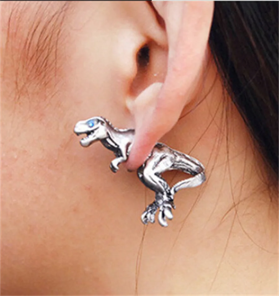 Серьги-гвоздики из нержавеющей стали с котом и динозавром