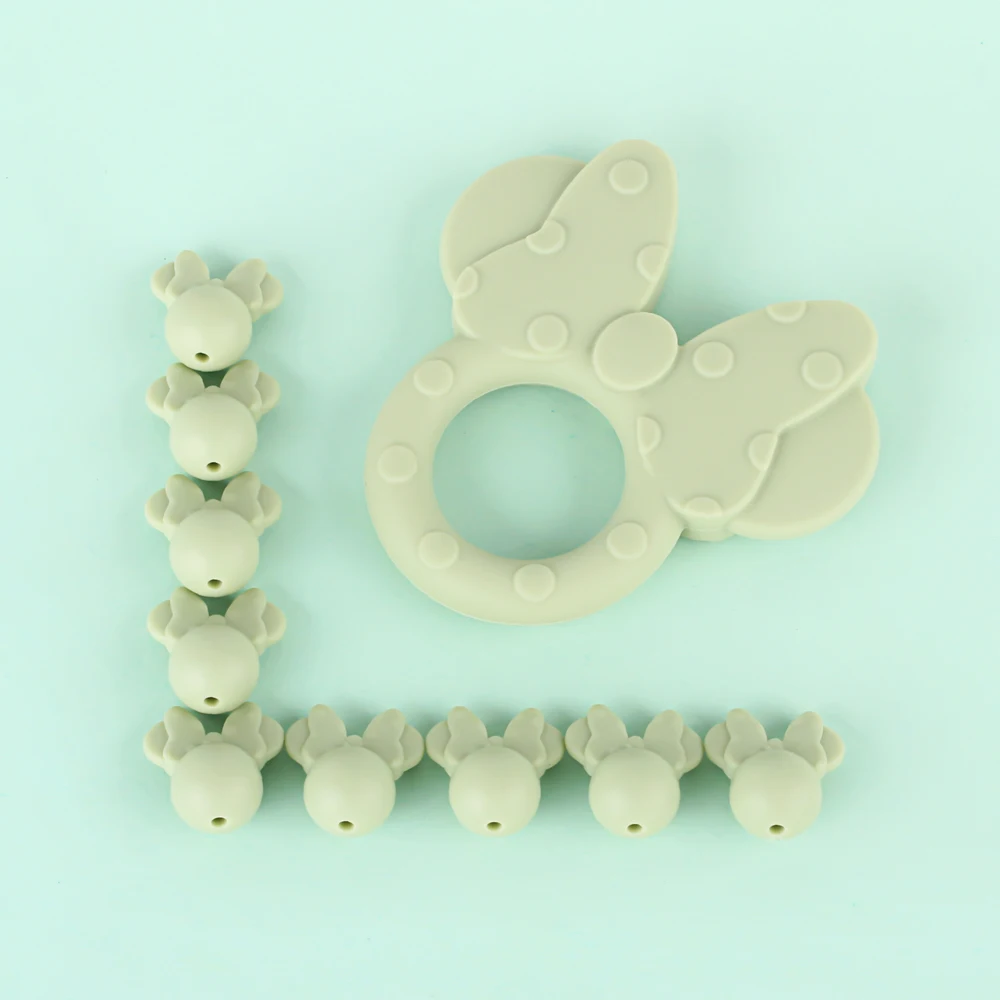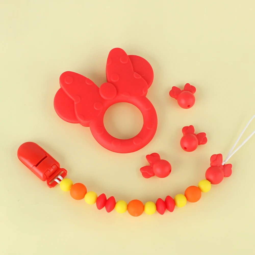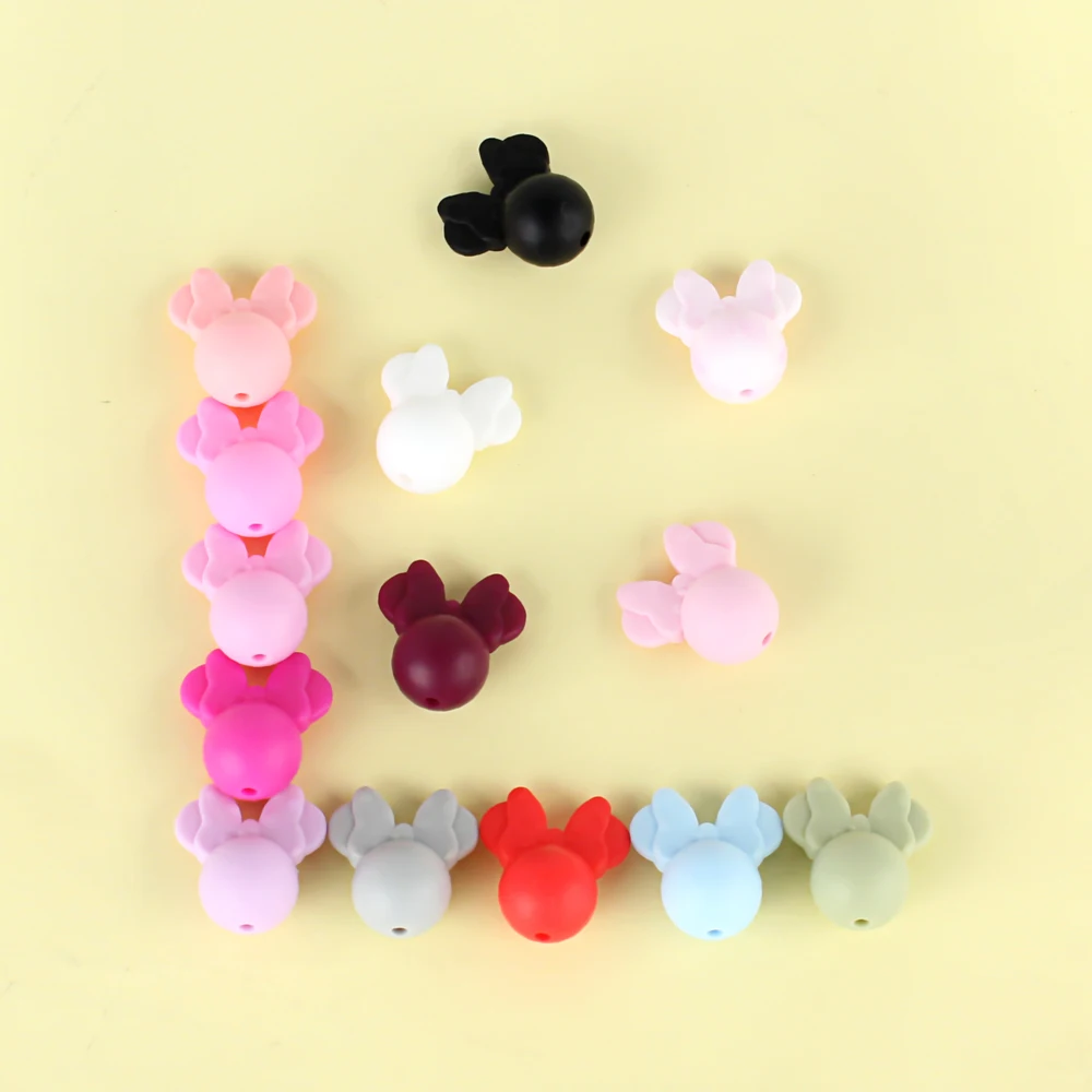 10 шт. детские силиконовые бусины в форме мультяшной мыши, бусины в форме животного, пищевого силикона, прорезыватели, игрушки для кормления, ожерелья, соски