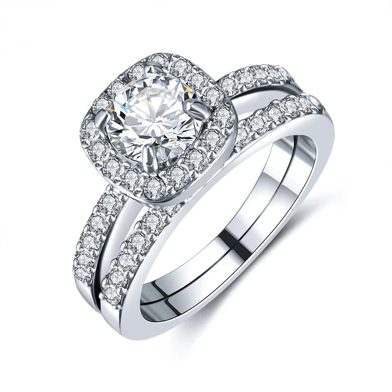 Двойные яркие изысканные квадратные Свадебные и обручальные кольца ...