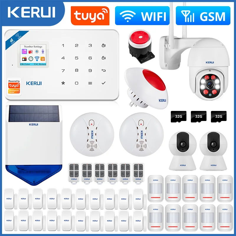 KERUI GSM WIFI Alexa Tuya Smart домашняя система охранной сигнализации Беспроводная гаражная IP-камера 3 Мп детектор движения датчик двери