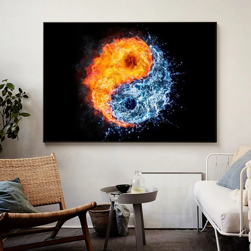 Картины на холсте Инь и Ян, постеры и принты с изображением огня и воды, Настенная картина для гостиной, украшение для дома