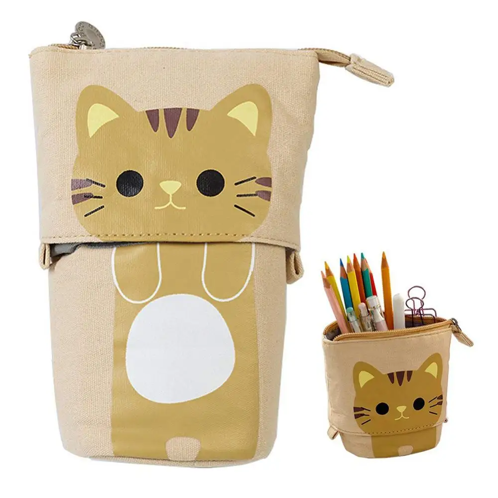 Лидер продаж 40%, чехол с мультяшным котом, телескопическая сумка на молнии, шкатулка для канцелярских принадлежностей, органайзер, чехол для ручек