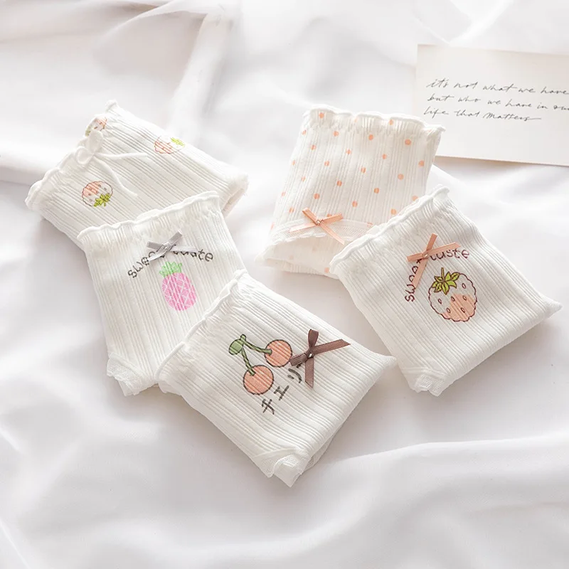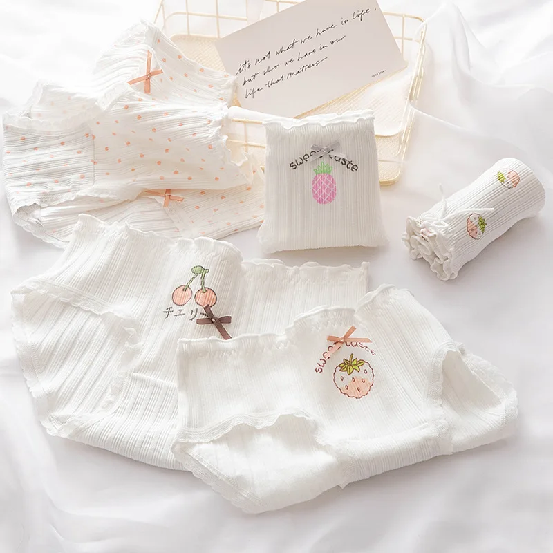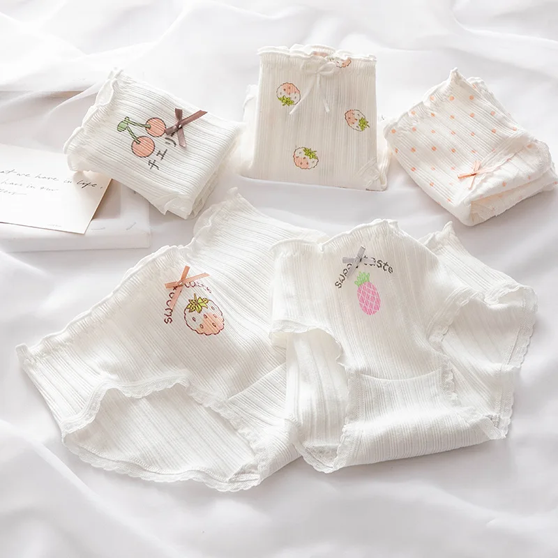 Трусики для девушек в горошек с милыми фруктами, менструальное хлопковое нижнее белье, белое нижнее белье, женские мягкие трусы NK55
