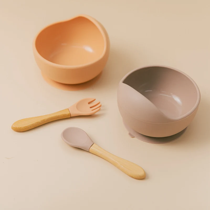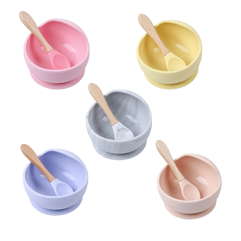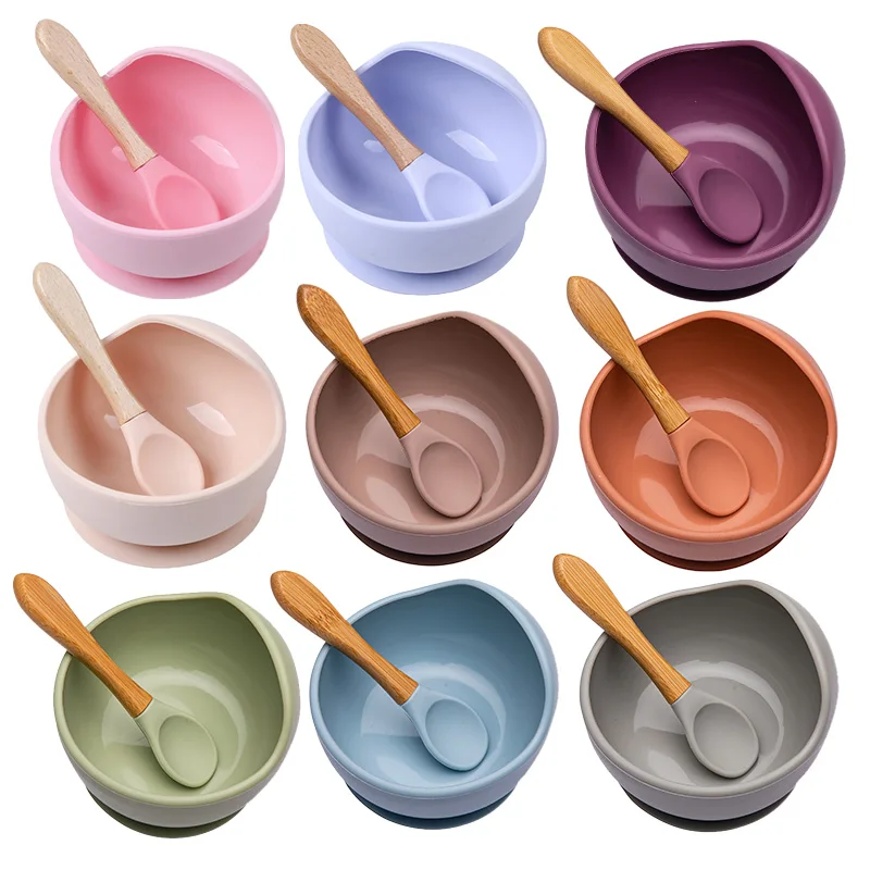 2 шт./1 комплект, миска для кормления детей, пищевой силикон, без BPA, Детская миска для кормления, водонепроницаемая ложка, Детская кухонная Нескользящая посуда