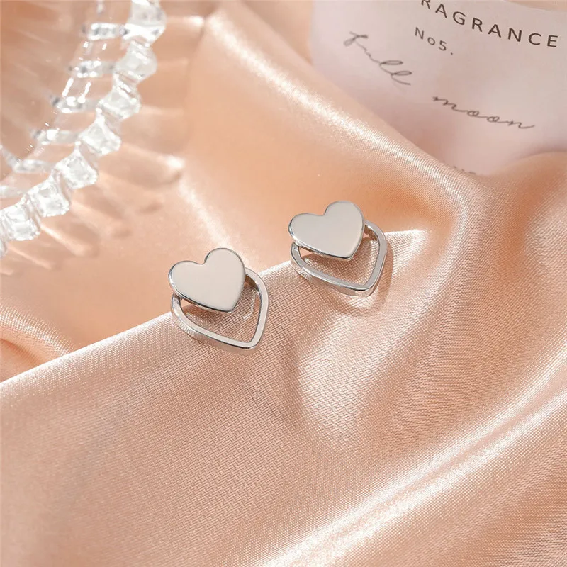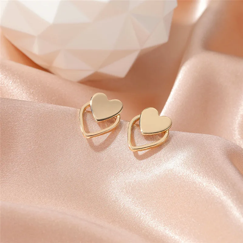 Женские серьги в форме сердца, маленькие простые серьги золотого и серебряного цвета, винтажные, в стиле панк, 2021, пустотелые серьги гвоздики