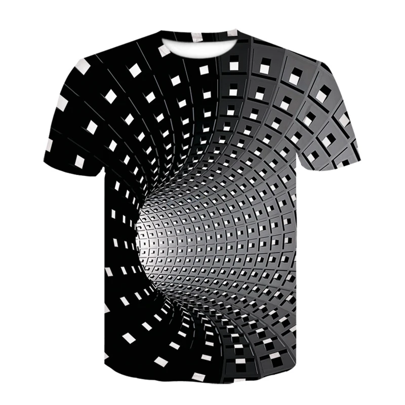 Летняя трехмерная черная футболка с 3d-закручиванием для мужчин и женщин, модная 3D футболка, футболка с коротким рукавом в стиле Харадзюку, футболка в стиле хип-хоп