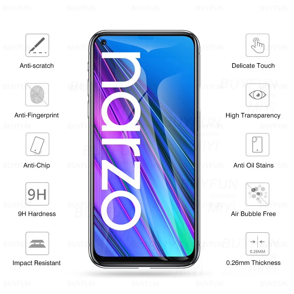 Закаленное стекло для Realmi Narzo 30 5G, 2 шт., закаленное стекло ...