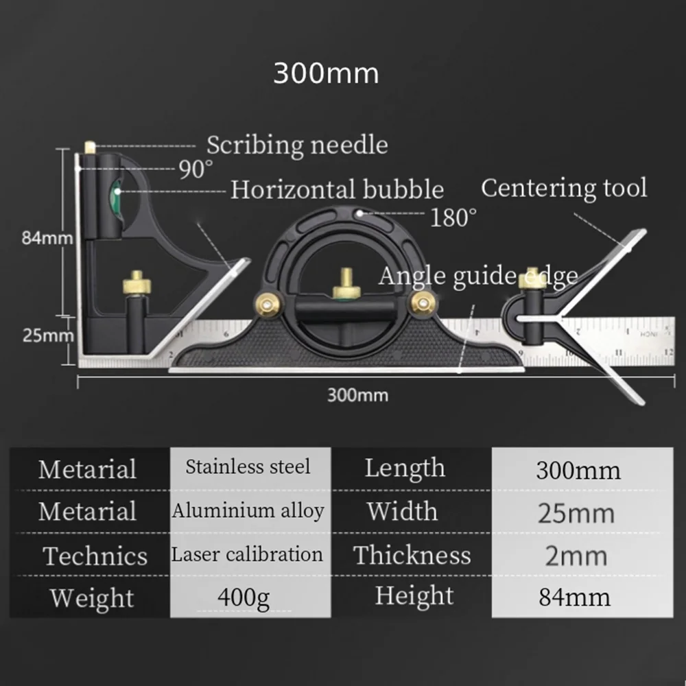 3 в 1 набор линейки с квадратным углом Многофункциональные комбинированные измерительные инструменты из нержавеющей стали измерительные инструменты угловая линейка транспортир 300 мм
