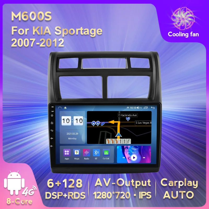 Автомагнитола на Android 11, 6 ГБ + 128 ГБ, 4G, LTE, RDS, DSP, мультимедийный видеоплеер для KIA Sportage 2007-2012, навигация GPS, SWC, BT