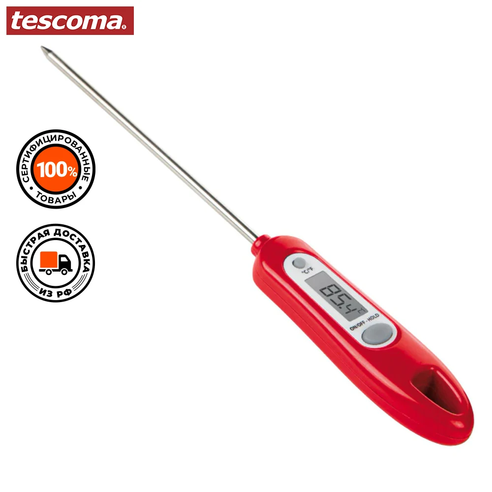Быстро и точно измеряет внутреннюю температуру пищи, напитков, соусов, и т.п. в градусах Цельсия °C и по Фаренгейту °F. Изготовлен из высококачественной нержавеющей стали и высококачественного пластика, снабжен ЖК-монитором и защитным покрытием для датчика. В комплект входят батареи. Устойчив к пару и влаге. Не пригоден для мытья в посудомоечной машине.