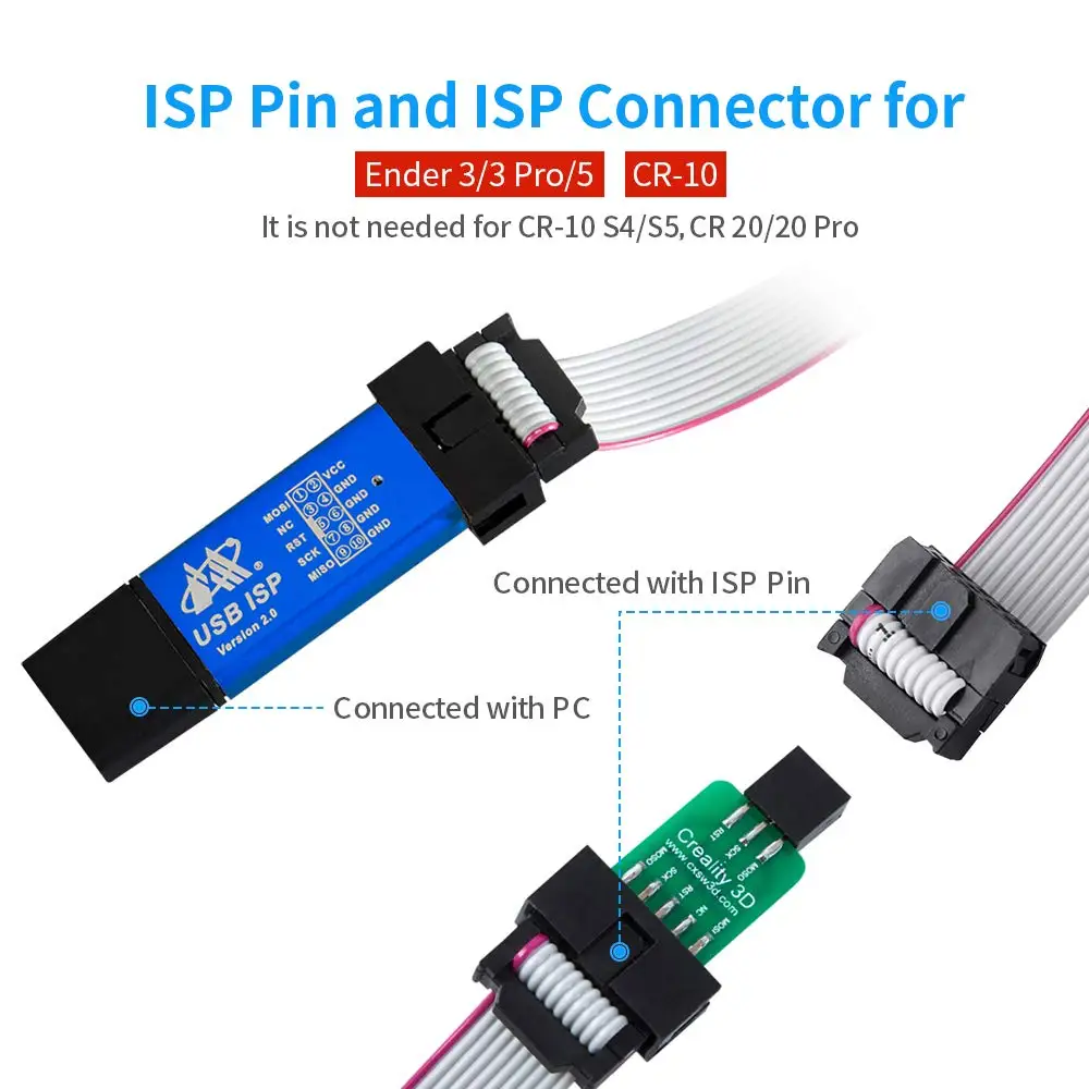 1. Используйте USB-кабель для подключения к компьютеру CR-10 S4, CR-10 S5, CR 20, CR20 Pro для прошивки, разъем ISP и пинборд ISP не требуются.