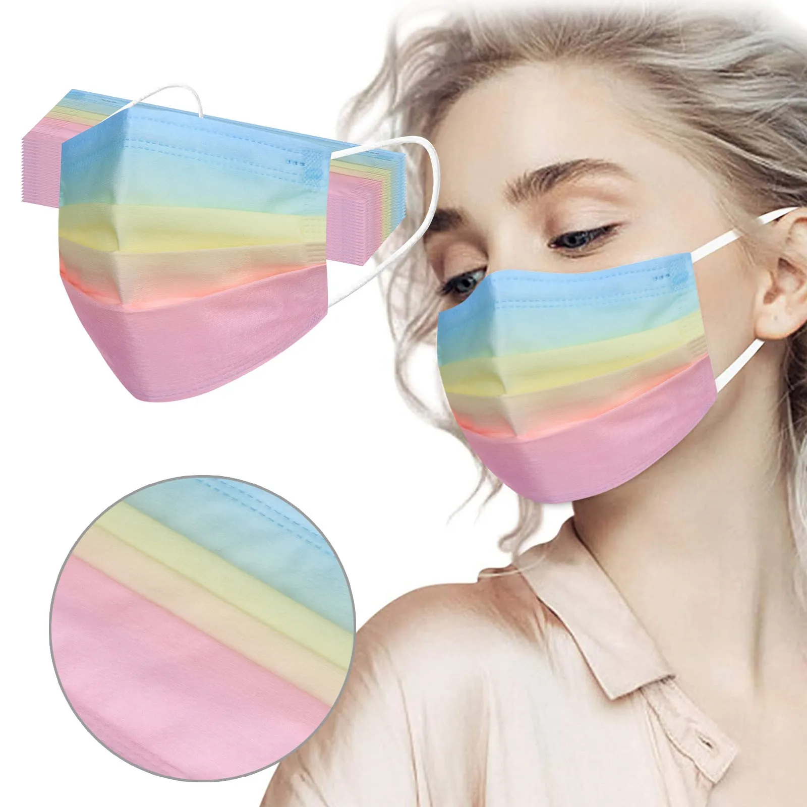 Маски для взрослых с градиентным принтом, 10 шт., одноразовые Тканевые маски для лица с цветочным узором, 3 слоя ткани, тушь для ресниц, модные ювелирные изделия