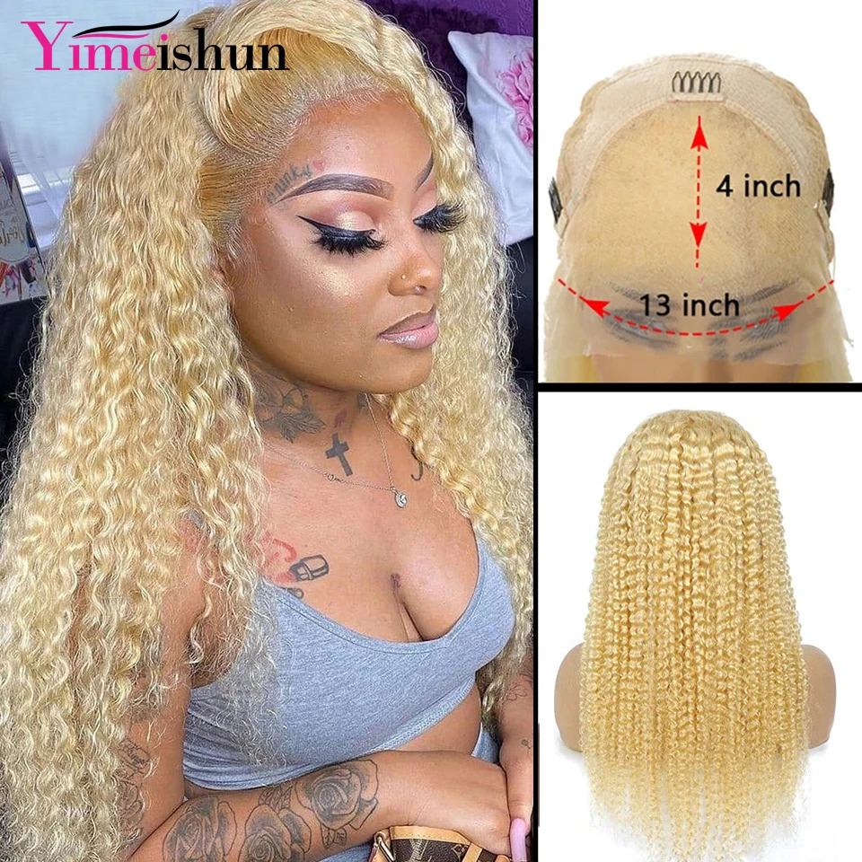 Парик светлый Боб из натуральных кудрявых волос, плотность 613, 13x4 HD, 180