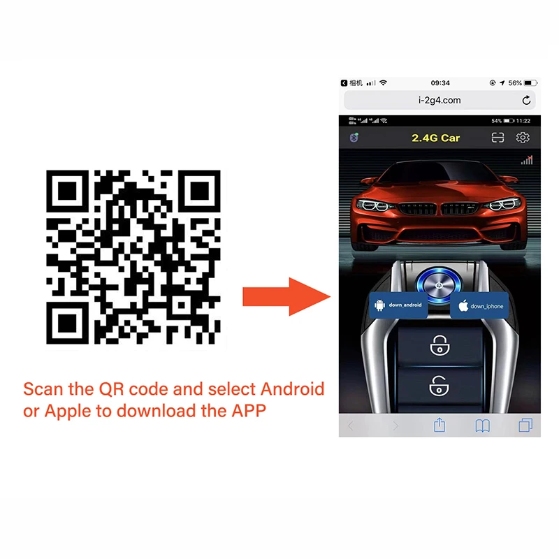 1. Отсканируйте qr-код и выберите Android или Apple для загрузки приложения2. Включите Bluetooth вашего телефона, затем откройте приложение и нажмите, чтобы войти в центр настроек; Нажмите кнопку обучения около 2 секунд, затем нажмите кнопку блокировки и Разблокируйте кнопку на пульте дистанционного управления три раза в течение 10 секунд (Примечание: Нажмите кнопку блокировки и Разблокируйте кнопки вместе); Вернитесь в центр управления приложением. Если вы можете управлять автомобилем, это означает, что вы успешно научились. Если вы не можете управлять автомобилем, выполните вышеуказанные действия и повторите попытку Примечание: вышеуказанная операция должна быть выполнена в пределах 10 метров от транспортного средства3. Убедитесь, что Bluetooth вашего телефона включен, и вы выполнили шаги (2), чтобы успешно узнать ключ. Теперь вы можете использовать приложение для управления автомобилем, чтобы заблокировать, разблокировать, открыть багажник, режим отключения звука и запустить двигатель.Примечание: 1. Когда автомобиль превышает определенный диапазон, он не может получить сигнал, отправленный приложением; 2. Пожалуйста, нажмите каждую кнопку в приложении в течение 2 секунд, чтобы отправить команду управления4. Система может позволить только один мобильный телефон, чтобы узнать ключ, то есть, когда вы используете новый мобильный телефон успешно узнать ключ, старый мобильный телефон не сможет управлять системой;5. Если вы хотите использовать несколько мобильных устройств одновременно, система может быть реализована с помощью авторизации, используйте новый мобильный телефон, чтобы загрузить приложение в опции лицензирования после того, как вход изучил код авторизации в ключах старый мобильный телефон; Авторизованный методом может использоваться неограниченное количество нового и неограниченного времени; Если вы хотите прекратить авторизацию, просто измените номер авторизации на старом телефоне, который уже изучил код.
