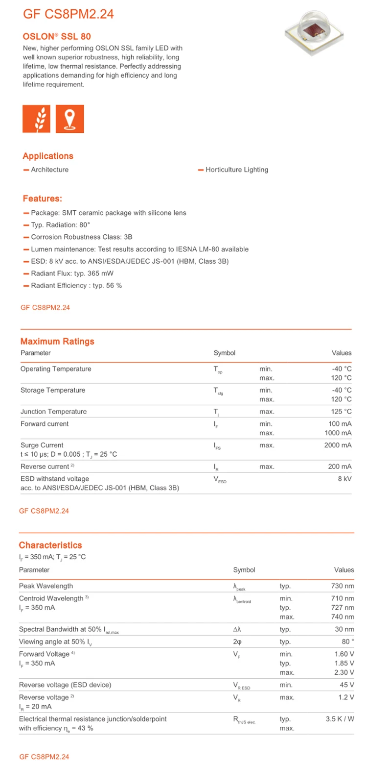 OSRAM GF CSSPM1.24 светодиодный параметр свойства: