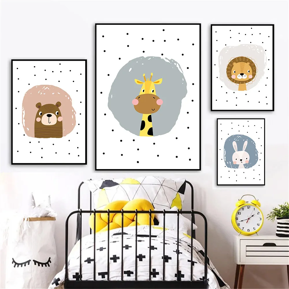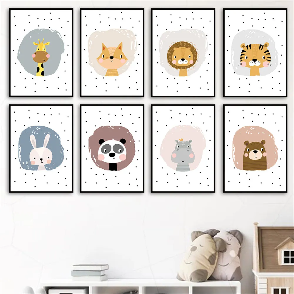 Детские плакаты с животными, пандой, жирафом, львом, Кроликом, медведем, картина для детской комнаты, Настенная картина, картины в скандинавском стиле, декор для детской комнаты