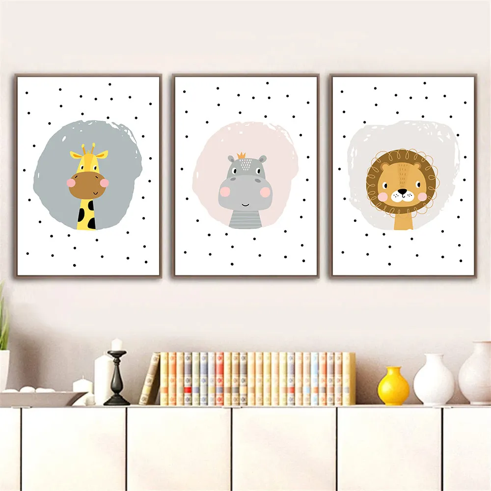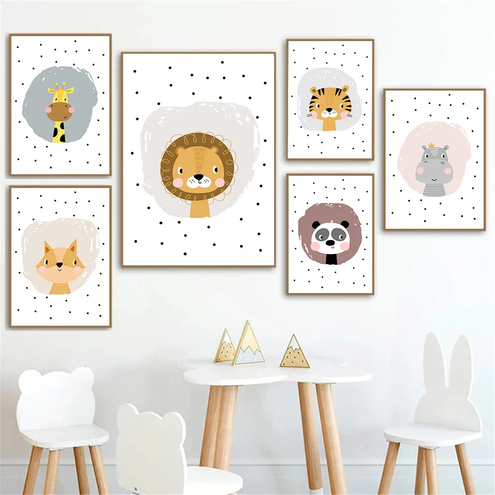 Лев "Зебра" Жираф "Слон" Ванна Холст плакат для детской стены малыш...