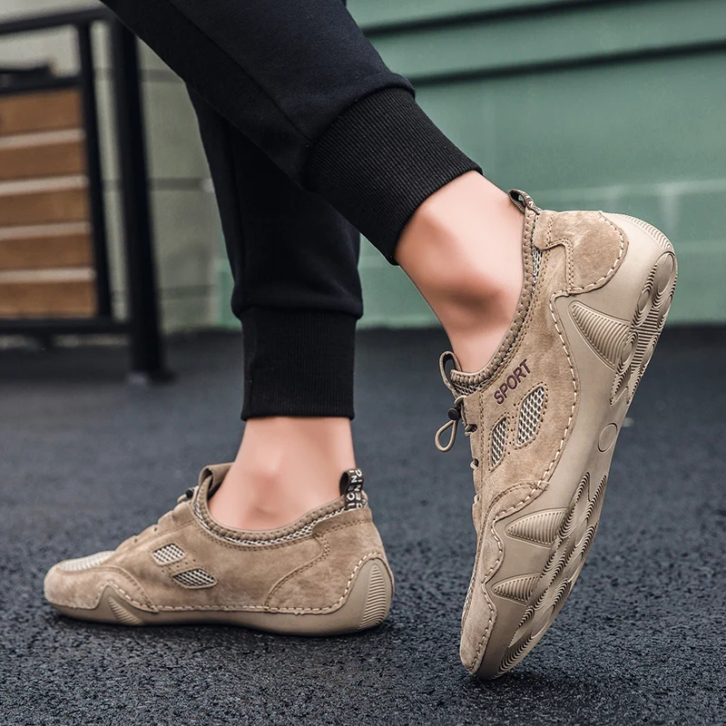 Мужские сетчатые кроссовки, повседневные уличные кожаные рабочие ту...