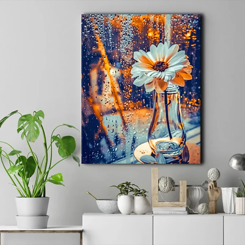 Набор для рисования по номерам на холсте, с изображением белого цветка в стекле