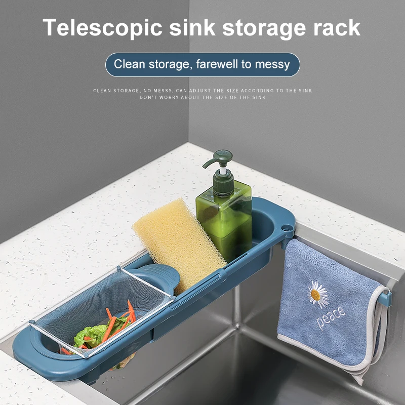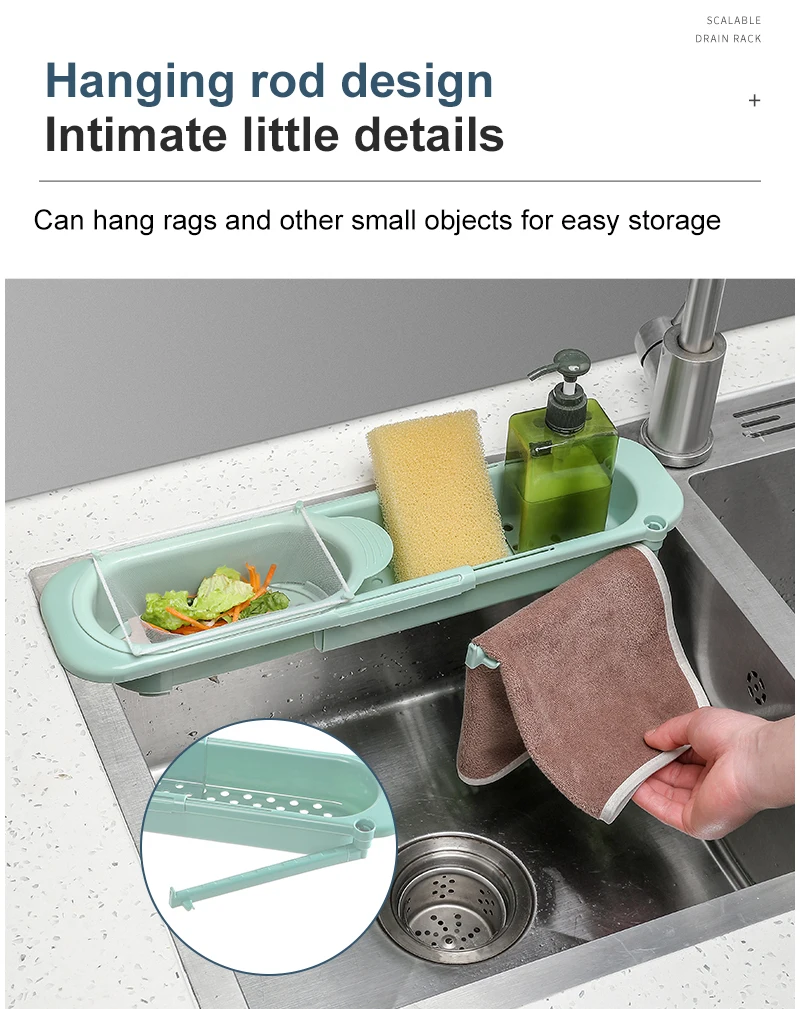 Сушилка для кухонной раковины, телескопическая дренажная корзина с вращающимся крючком для полотенец, держатель для губки, органайзер для хранения раковины, полка