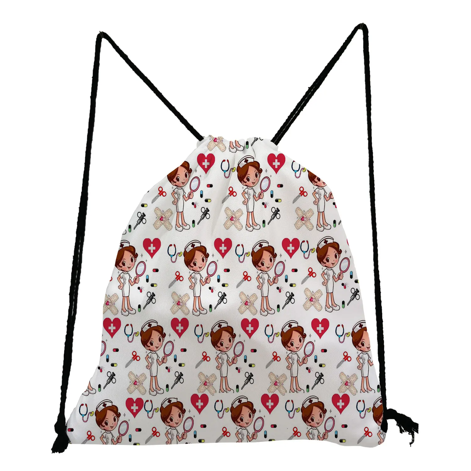 Рюкзак для медсестер с принтом, вместительные экологически чистые многоразовые сумки на шнурке, мультяшный складной мешок для хранения из полиэстера для женщин, унисекс, сумка для книг