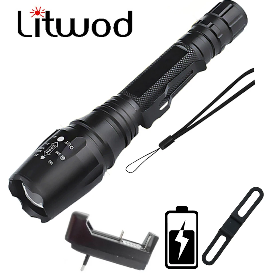 Светодиодный фонарик Litwod, Ультраяркий фонарь L2 T6 для кемпинга, светильник режимов переключения, водонепроницаемый масштабируемый велосипедный фонарь с батареей 18650