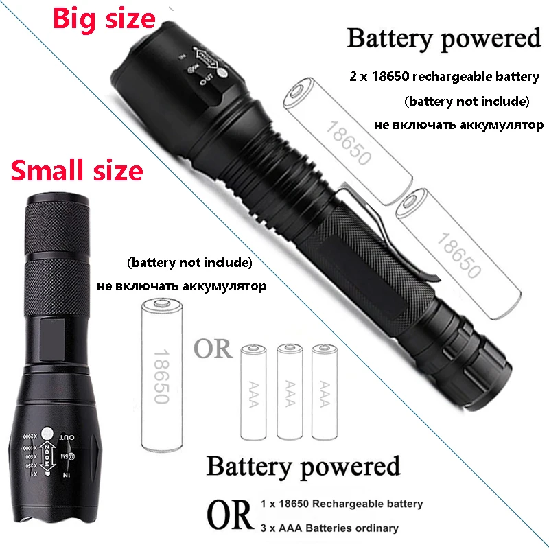 Маленький размер 1*18650 / 3 x AAA батареи(Аккумулятор не входит в комплект)