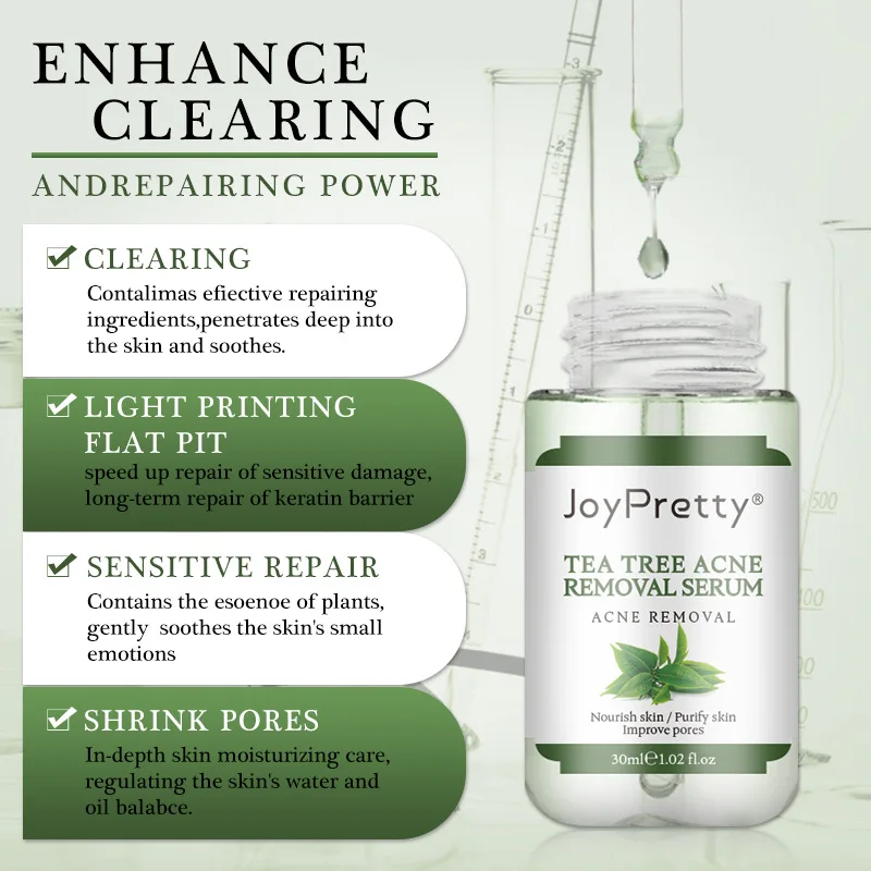 Сыворотка для лечения акне с Чайным Деревом JoyPretty, средство для удаления прыщей и сужения пор, питательный увлажняющий продукт для гладкой кожи, увлажняющий уход