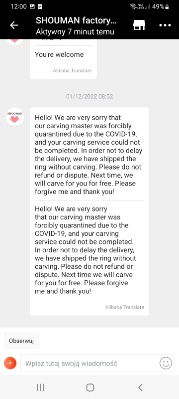 Не рекомендую! Продавец не graweruję цепные письма почтовый пустой и не хотят платить деньги, это второй раз, та же ситуация у продавцов. Пишет, что это covid и мы вернем деньги или я пошлю новую цепочку и так нет доставка с надписью wygrawerowanych Обратите внимание, не заказывайте!